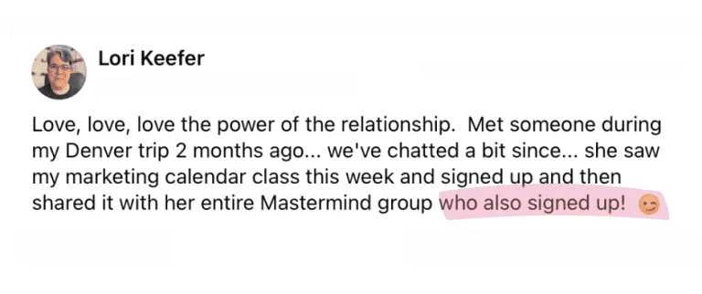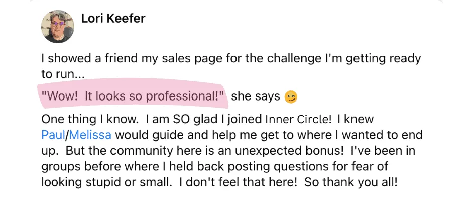 Also, the community with the other members, especially now that we've had the in-person mastermind and met in real life. So I know that not only are Paul and Melissa and the team they have built genuine about wanting to help, but the rest of the community is just as genuine and wants to help each other.
